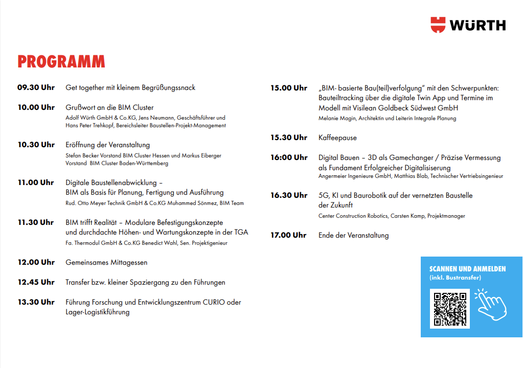 Anmeldung für BIM Cluster Mitglieder und Gäste: https://wuerth-bpm.mguestsalt.com/site/event/public/PDNKIXW3